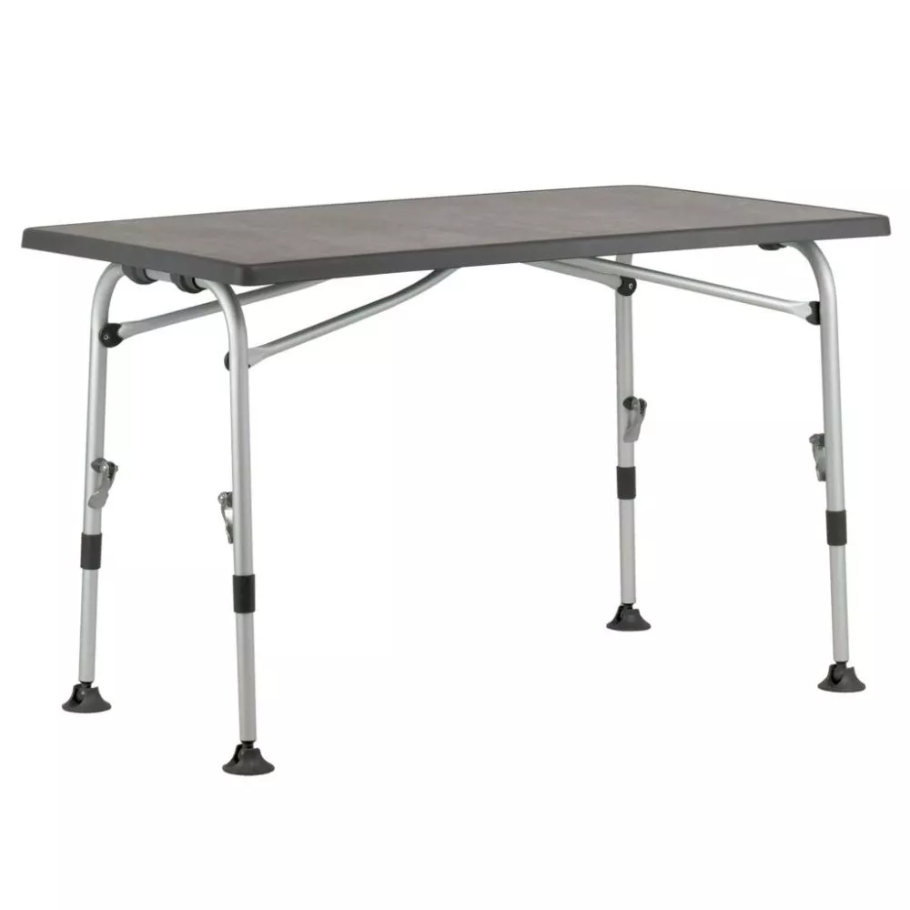 Der Camping-Klapptisch Westfield Superb 80 mit einem stabilen Gestell aus Aluminium-Rundrohr und einer wetterfesten Tischplatte erscheint in elegantem Design. Alle 4 Tischbeine sind einzeln und stufenlos höhenverstellbar. Mit einer einfach zu bedienenden Exzenterverriegelung mit Schnellverschluss gelingt die Höhenverstellung leicht und einfach. Die Tellerfüsse mit Kugelgelenk ermöglichen einen festen Stand, schonen den Vorzeltteppich und verhindern das Einsinken auf weichem Boden.