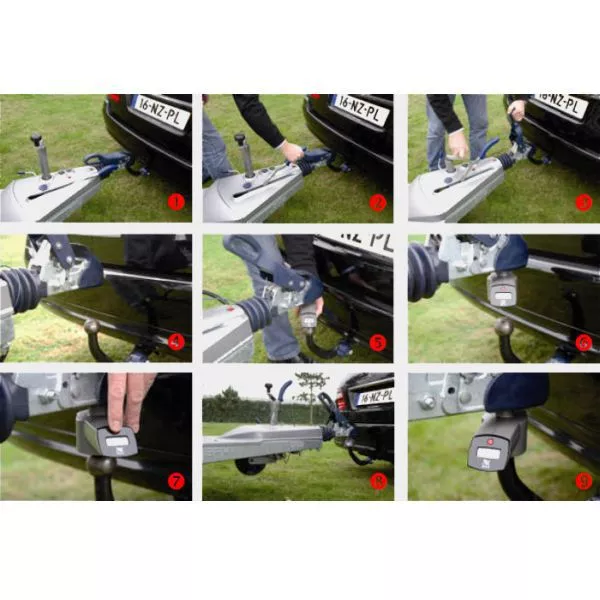 - Anhängerkupplung auf Zugfahrzeugkupplung einkuppeln.