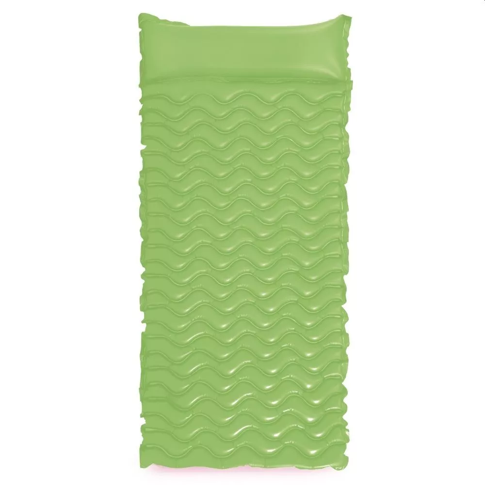 Entspanntes Sonnenbaden auf dem Wasser. Mit den 229 x 86 cm grossen Luftmatratzen „Tote-N-Float Wave Mats“ von Intex ist das möglich. Das integrierte Kopfkissen und das einzigartige Wellen-Design sorgen für einen angenehmen Liegekomfort. Zwei Luftkammern, doppelt verschweisste Ecken und ein 0,25 mm starkes Vinyl sorgen für Festigkeit und Stabilität. Selbst im aufgeblasenen Zustand ist die Luftmatratze leicht zu transportieren, einfach zusammen rollen und schon kannst du entspannt zum Pool oder See gehen.