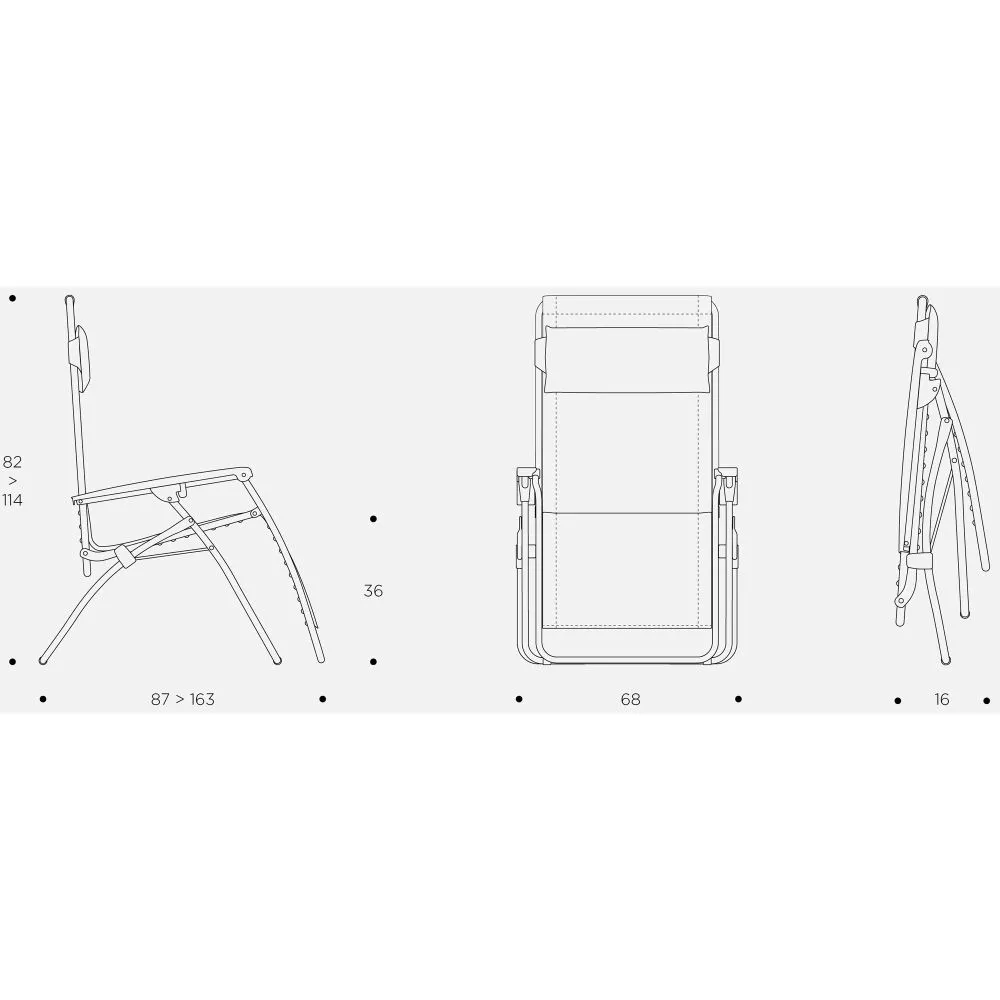 Der Lafuma R Clip Batyline ist ein stufenlos verstellbarer Relaxsessel für beste Erholung und Entspannung. Der R Clip findet leicht seinen Platz im Garten, am Swimmingpool oder auf der Terrasse. Die beliebteste Ruheeinstellung ist die bekannte „Schwerelosigkeit“ (mit den Füssen leicht oberhalb des Herzens). Der hochwertige Bartyline ISO Bezug wird an den Stahlrohren durch Clips aus Elastomer gehalten. Damit hast du einen stabilen und festen Komfort, der deinen Rücken optimal unterstützt.