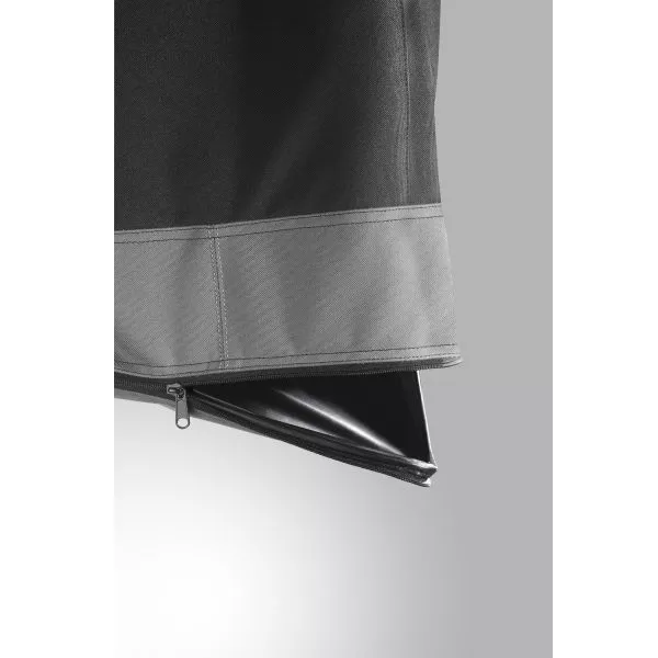 Der aus verstärktem Nylongewebe bestehende, in einem stabilen Rahmen hängende Abfallbehälter ist geeignet für handelsübliche Abfallbeutel von 50 Litern Inhalt, er wird von einem wasserfesten, abwaschbaren Deckel verschlossen. Bei Nichtgebrauch kann er einfach platzsparend zusammen gefaltet werden. Die Befestigung erfolgt mittels des POD-Systems.