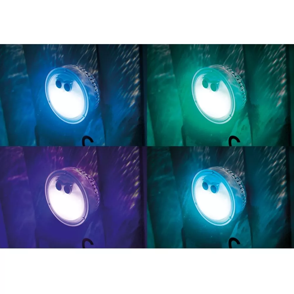 Schaffe die perfekte Stimmung und Atmosphäre, während du dich in deinem Spa entspannst. Das Intex Multi-Colored LED-Licht leuchtet in 5 verschiedenen Farben: Weiss, Grün, Petrol, Blau und Violett bei zwei Beleuchtungsmodi: einfarbig oder Farbwechselmodus.