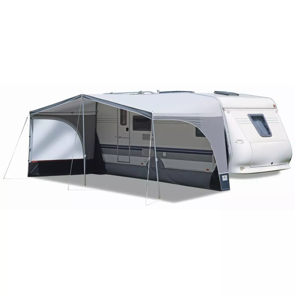 Das Wohnwagen-Sonnendach brand Sunny SD ist ein komfortables, ca. 235 cm tiefes Qualitäts-Sonnendach, das inklusive Seitenwänden geliefert wird. Diese Seitenwandelelemente sind durch Reissverschlüsse einfach zu entnehmen. Das Sunny SD überzeugt durch einen einfachen Aufbau des Vorzeltgerüsts mit drei Standbeinen und drei Dachstangen. Das leichte Aluminiumgestänge wird besonders von Reisecampern geschätzt. Das spezielle Sonnendach-Gewebe garantiert ein minimales Gewicht.